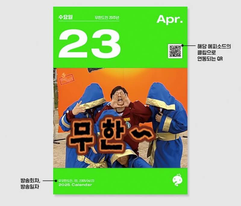 추억의 무한도전이 벌써 20주년이 되었습니다. 20주년을 맞아 2025년 무한도전 20주년 달력을 선보였는데요. 만들어져 독특하고 특별한 20주년 에디션 달력으로 무한도전의 명장면과 함께 매일을 특별하게 만들어줍니다.