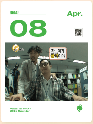무한도전 달력은 예약 주문해야하는 상품으로 사전예약이 필수입니다. 아래에서 바로 사전예약하시고, 하루하루 특별한 2025년을 만드세요!